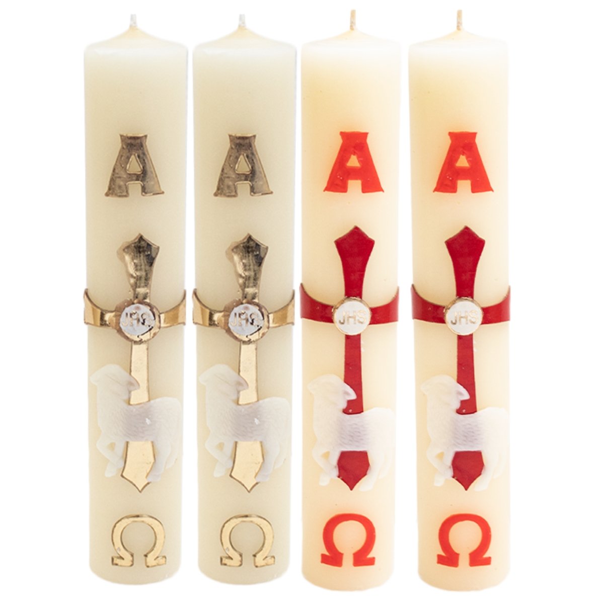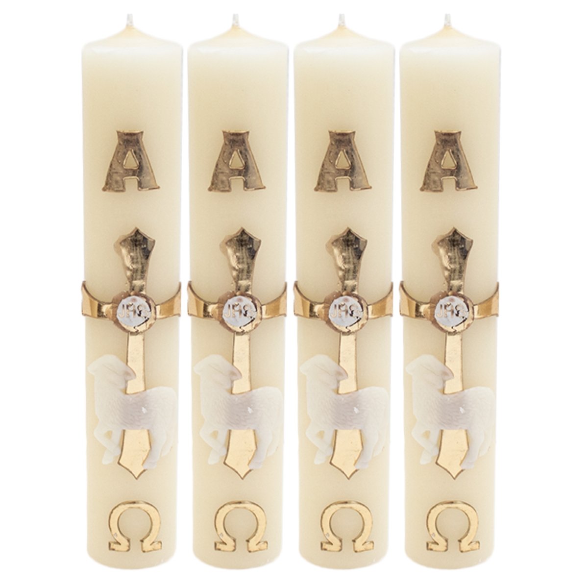 PAQUETE DE 4 CIRIOS PASCUAL DECORADOS CON INCRUSTACIONES DE CERA.
