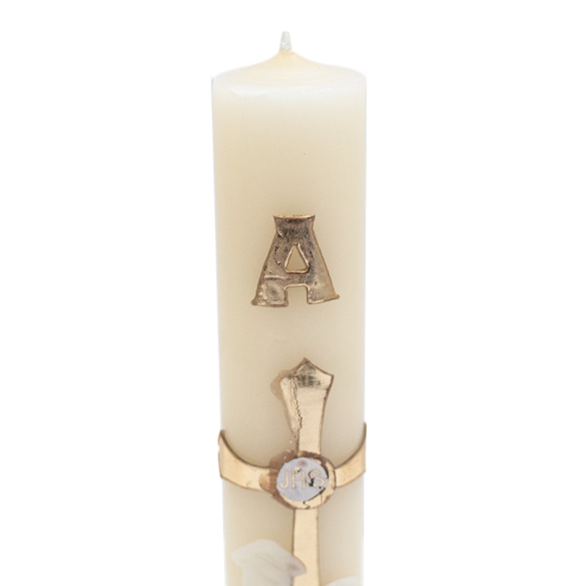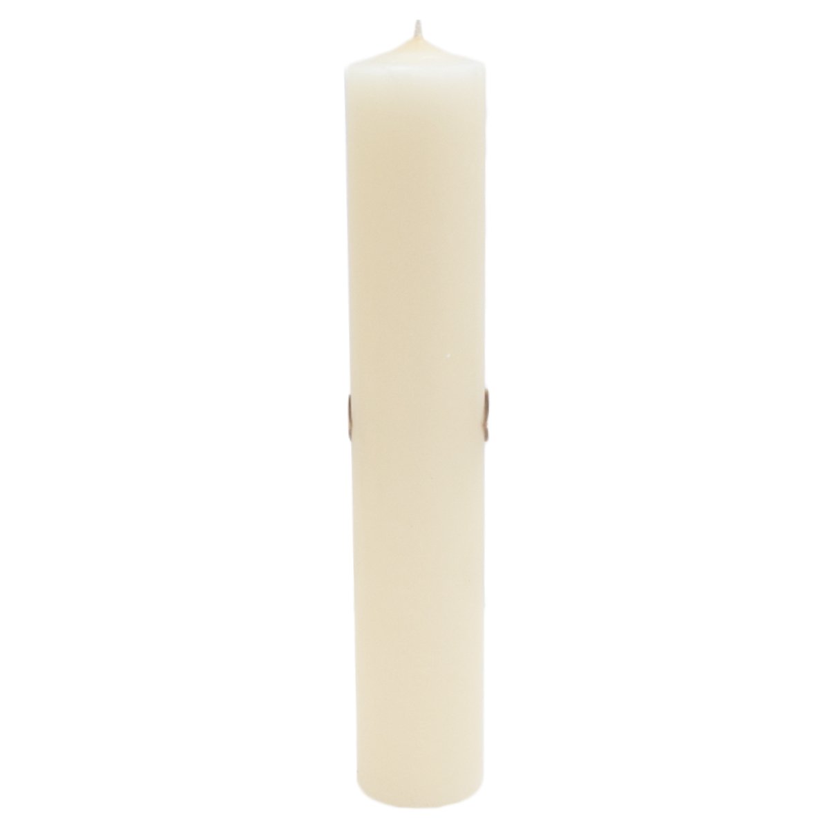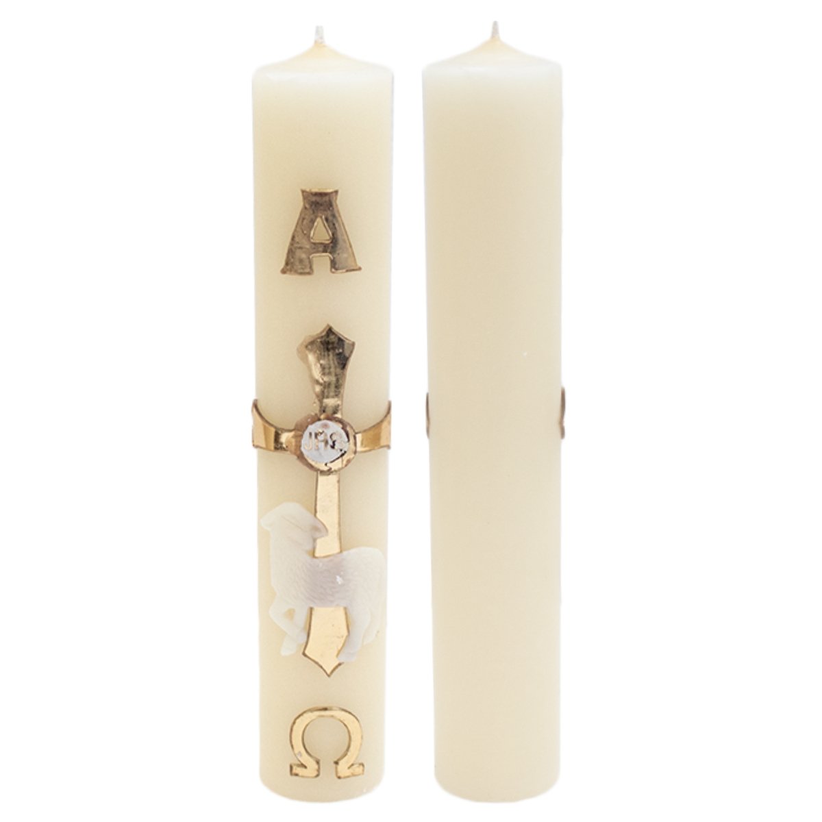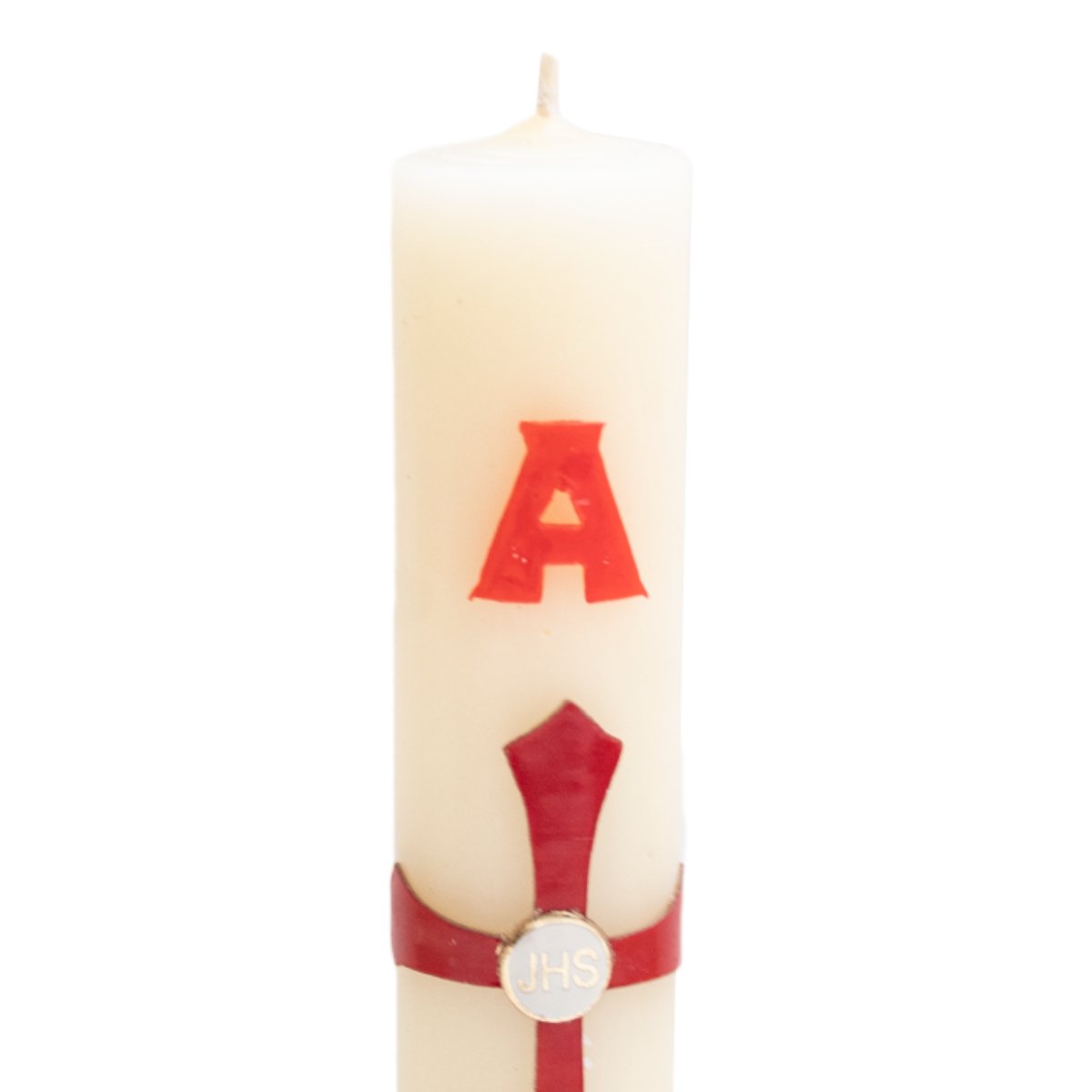 Medidas 3.5 cm x 19 cm de alto Símbolo de Cristo resucitado y su luz que ilumina al mundo, el Cirio Pascual es la vela que se consagra y enciende en la Vigilia Pascual de la liturgia católica de la noche del Sábado Santo y se expone durante cuarenta días que representan el tiempo que pasó Jesucristo entre nosotros desde su resurrección hasta su ascensión al cielo en cuerpo y alma.